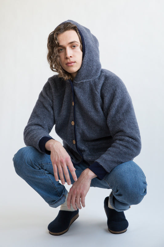 Merino Wool Fleece Unisex Hoodie - Denim/Navy