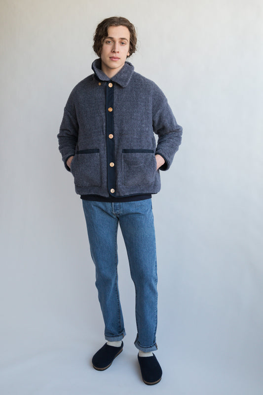 Unisex Reversible Wool Fleece Jacket - Denim/Navy